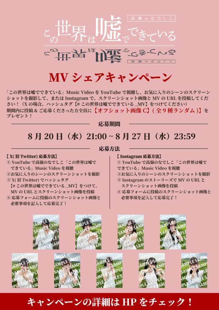 X(旧Twitter)またはInstagramで、スクリーンショット画像とMVのURLを投稿してください!(Xの場合、ハッシュタグ【#この世界は噓でできている_MV】をつけてください)