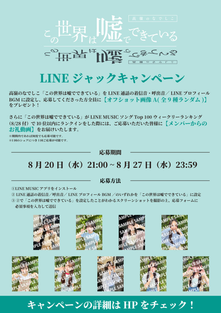 ※メンバーへのポーズや表情などのリクエストについては一切お受け出来ません。